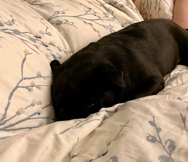 It’s tough being a Pug…all that eating, snoozing, playing, trying to find the sunny spot on the dining room floor, walks (with fur lined rain coats) and then snuggling up in bed with your favourite humans at the end of a long hard day 😉