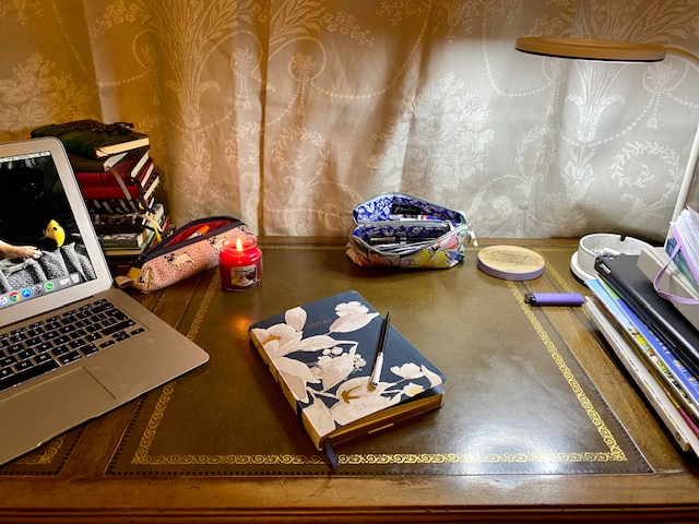 We finished decorating the house a couple of months ago. The room (affectionately known as the back room) was going to be my study/library. But when we decided to move we made it into a bedroom to aid with the sale. So although my desk is in there, it’s not really felt like my study. I’ve continued to use the dining room table for my writing, mainly because i’m usually at home all day on my own, so theres no real need to go in there for “me” time.