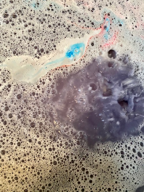 I can only describe it as muddy purple lol…wasn’t expecting that from a Christmas themed bath bomb!