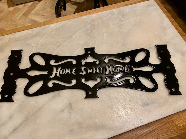 Since then we’ve moved a further three times (two rentals) until we found this place five years ago…another renovation project, but one we were confident we could tackle. The house was finally finished last year and so I dug out my sign. It’s been sitting on a shelf in my study, waiting to be painted since September. So with the house on the market (thank you so much Covid, or should that be the UK Government I should thank!) I thought it would be nice to finally hang it up. Sunday afternoon I got the spray paint out. I haven’t done anything with paint for months, and it felt so good being creative, even if it was just using some black spray paint lol. It came out really well. It’s so shiny it looks like its been enameled 😊