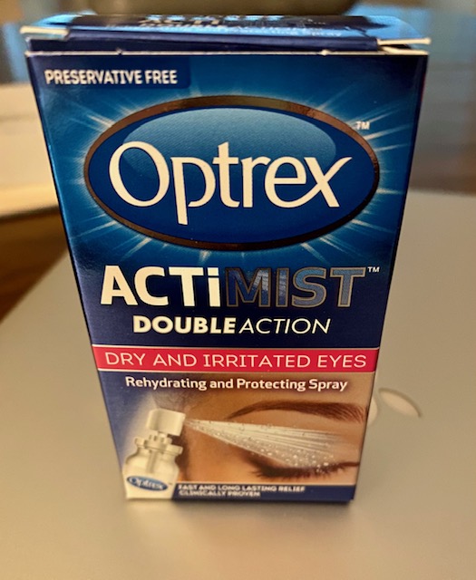 I saw an advert on TV a few months back for a spray that is supposed to help with dry irritated eyes. My problem is that my eyes don’t make the correct amount of tear film, the layer that protects the surface of the eye from all the yukky stuff floating about around us. And the spray claims to put back the moisture that is lost during day to day life.
